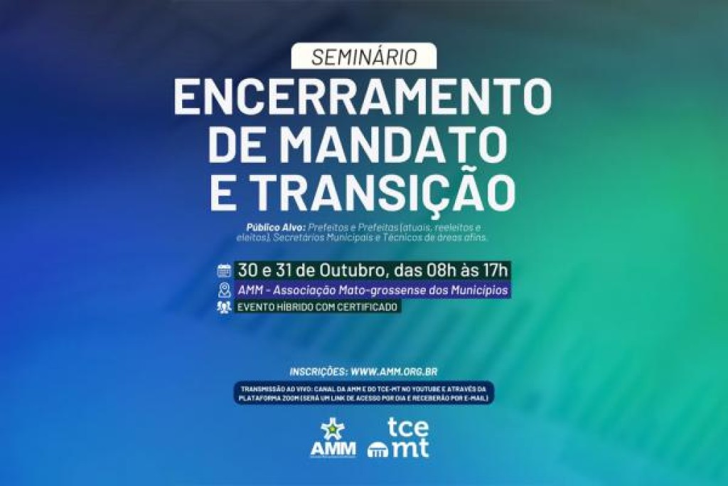 O Tribunal de Contas de Mato Grosso (TCE-MT) e a Associação Mato-grossenses dos Municípios (AMM) realizam, nesta quarta (30) e quinta-feira (31), o seminário “Encerramento