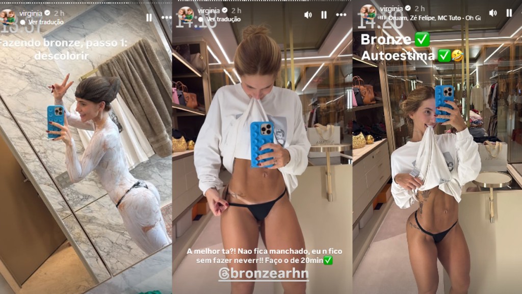 Virginia Fonseca mostrou para os fãs a sua técnica para manter o bronzeado em dia. De biquíni, a influenciadora e empresária apareceu coberta de descolorante, da