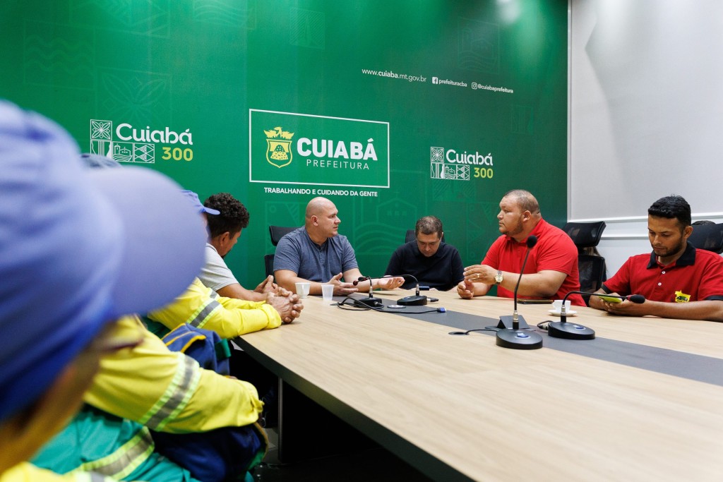 O prefeito Abilio Brunini comandou uma mesa de negociação entre a empresa MD Terceirizações e seus funcionários, responsáveis por serviços de limpeza e zeladoria na