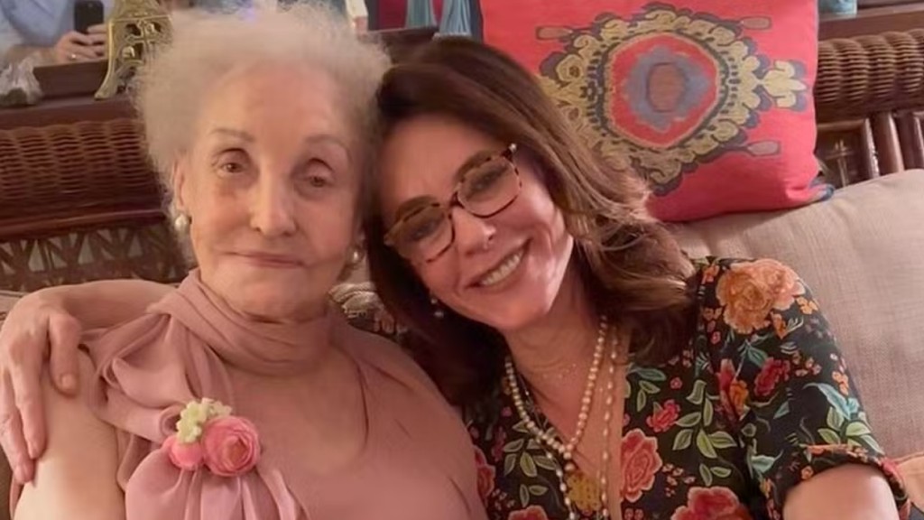 Monah Delacy, mãe da também atriz Christiane Torloni, de 68 anos, completou 96 anos no sábado (22), e ganhou bolo e festinha após exibição do espetáculo