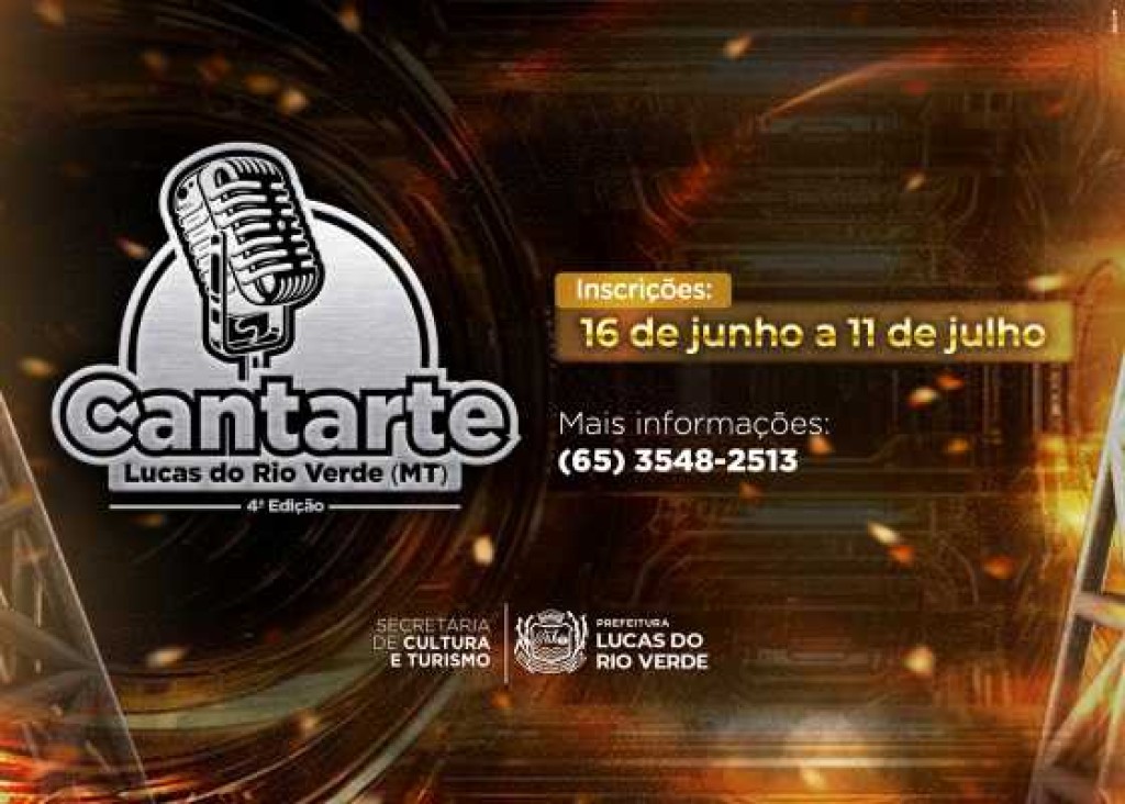 Estão abertas até o dia 11 de julho as inscrições para o Cantarte 2025, concurso de canto promovido pela Prefeitura de Lucas do Rio Verde,