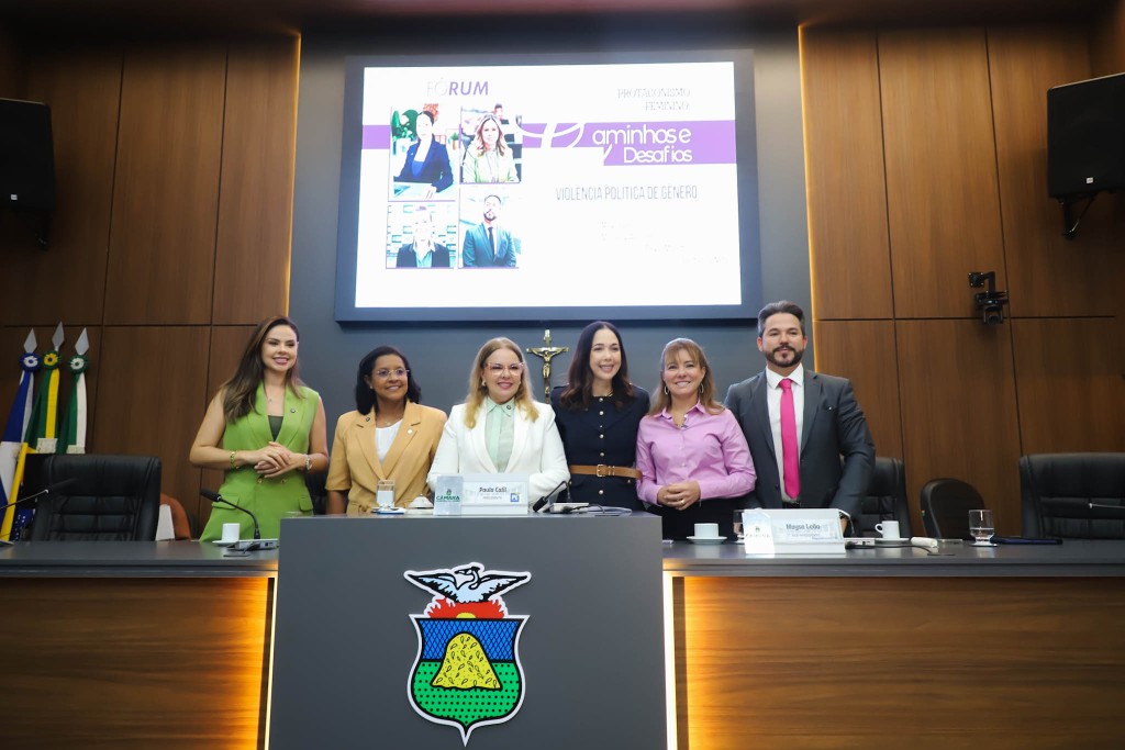 A prefeita Flávia Moretti foi uma das autoridades que discursou sobre o tema “Violência Política de Gênero”. Emocionada, ela falou sobre a violência política que