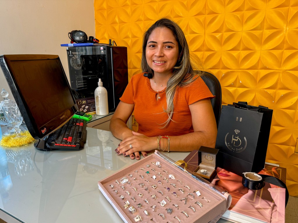 Flávia Dias, proprietária do empreendimento Helisa Davi Joias, está no ramo há cinco anos, e nesse período, percebeu que queria focar exclusivamente em seu negócio. Com o apoio da Agência de Fomento do Estado de Mato Grosso – Desenvolve MT, ela conta que conseguiu adquirir as máquinas e ferramentas necessárias para realizar seu objetivo.
