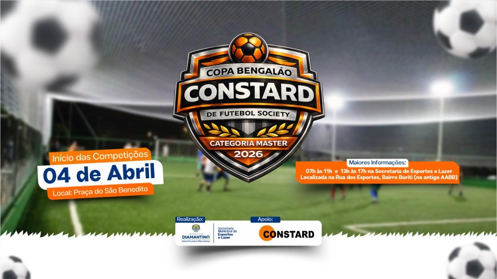 A Prefeitura de Diamantino, por meio da Secretaria Municipal de Esportes e Lazer, informa que a abertura da Copa Bengalão Constard de Futebol Society, prevista