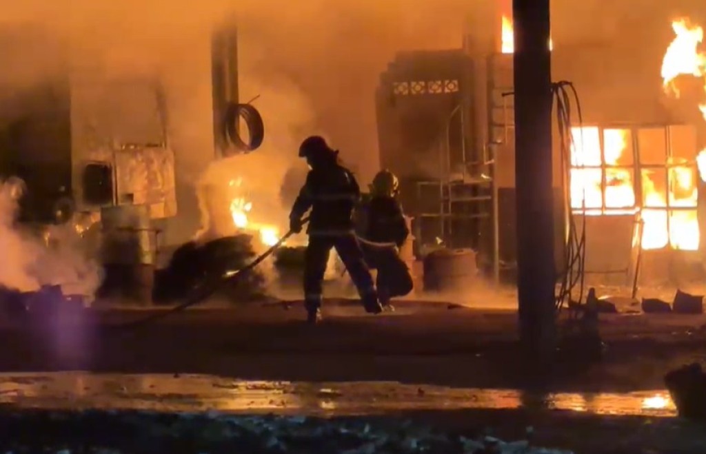 Rapidamente, a equipe isolou a área devido à presença de produtos inflamáveis, que causaram explosões, e iniciou a ação de combate.