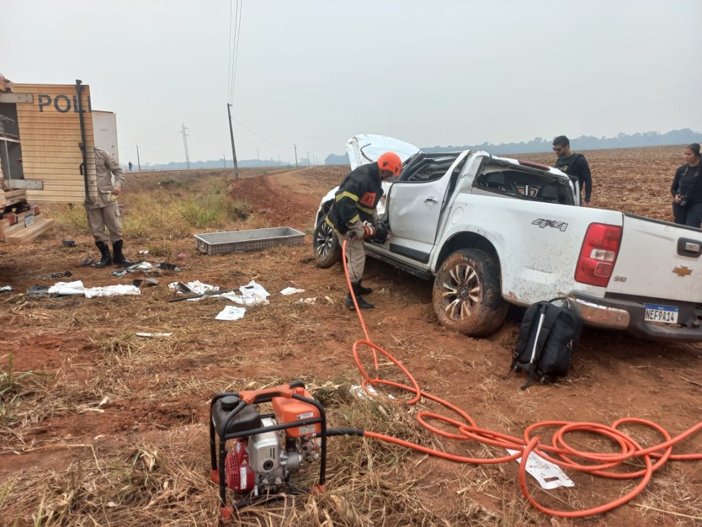 A equipe da 14ª Companhia Independente de Bombeiro Militar (14ª CIBM) foi acionada para atender à ocorrência com informações de que o acidente envolvia uma caminhonete que havia capotado com duas pessoas a bordo. O veículo seguia de Juína sentido Brasnorte.