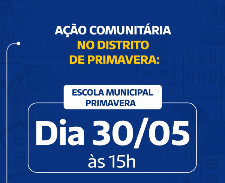 Nesta sexta-feira, dia 30 de maio, às 15h, o distrito de Primavera — carinhosamente chamado de “Primaverinha” — recebe uma ação comunitária, que acontece na Escola Municipal Primavera, promovida pela Secretaria de Assistência Social de Sorriso, em parceria com a Secretaria da Mulher e da Família. Essa será a primeira ação do ano realizada no distrito, que há muito tempo aguardava um evento desse tipo.
