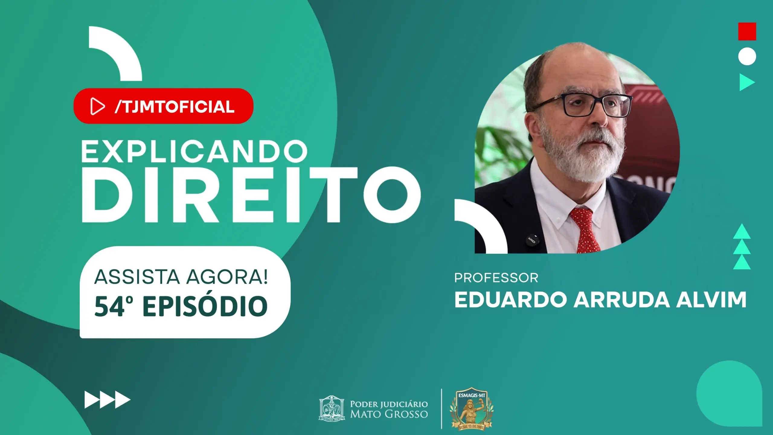 A Escola Superior da Magistratura de Mato Grosso (Esmagis-MT) lançou nesta sexta-feira (27 de março) a 54ª edição do programa Explicando Direito, que aborda o tema “Competência para moldar o precedente e suas implicações”. O episódio conta com a participação do professor doutor e jurista Eduardo Arruda Alvim, referência nacional em Direito Processual Civil, e foi conduzido pelo juiz Antônio Veloso Peleja Júnior, coordenador pedagógico da instituição.