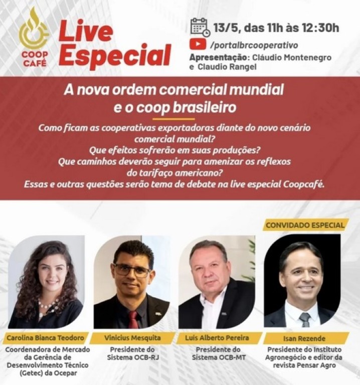 Sob a condução de Cláudio Montenegro, a live vai reunir vozes influentes do cooperativismo nacional, como Carolina Bianca Teodoro, coordenadora de Mercado da Gerência da Ocepar; Vinicius Mesquita, presidente do Sistema OCB-RJ; e Luiz Alberto Pereira, presidente do Sistema OCB-MT. O painel será um espaço de diálogo sobre as inquietações que pairam sobre o setor: