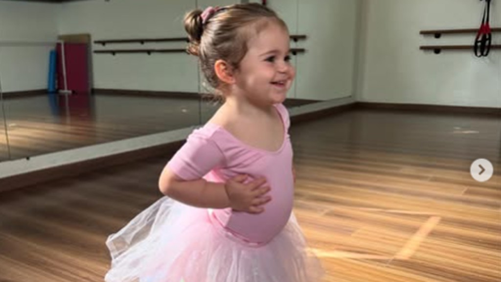 “Eu arrasei na minha primeira aula de ballet! Nem tenho 2 aninhos ainda, as aulas começam só com 3 anos, mas sou tão esperta que fui superbem na aula”, diz a legenda sobre a menina, que completa o segundo ano de vida no próximo dia 9 de abril.