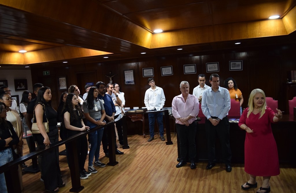Além do bate-papo com a desembargadora no Espaço Memória, os 41 estudantes do 2º ao 10º semestre da Fapan conheceram os espaços do TJMT, assistiram uma sessão da Quarta Câmara Criminal, viram sustentações orais de perto e aprenderam um pouco sobre a estrutura e funcionamento do tribunal com a servidora Ananda Souza Duarte, da Coordenadoria Judiciária.