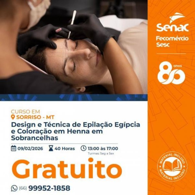 Conhecimento nunca é demais, né? E ainda mais se for algo que pode gerar renda. Essa é a proposta do curso de design e técnica de epilação egípcia e coloração em henna em sobrancelhas. São ofertadas 20 vagas e as inscrições podem ser feitas pelo (66) 99952-1858. As vagas serão preenchidas por ordem de inscrição. O curso terá carga horária total de 40 horas com início na próxima segunda-feira, 9 de fevereiro com término previsto para 23 de fevereiro. A formação, totalmente gratuita, será na Casa Aconchego de segunda a sexta-feira, das 13 às 17 horas.
