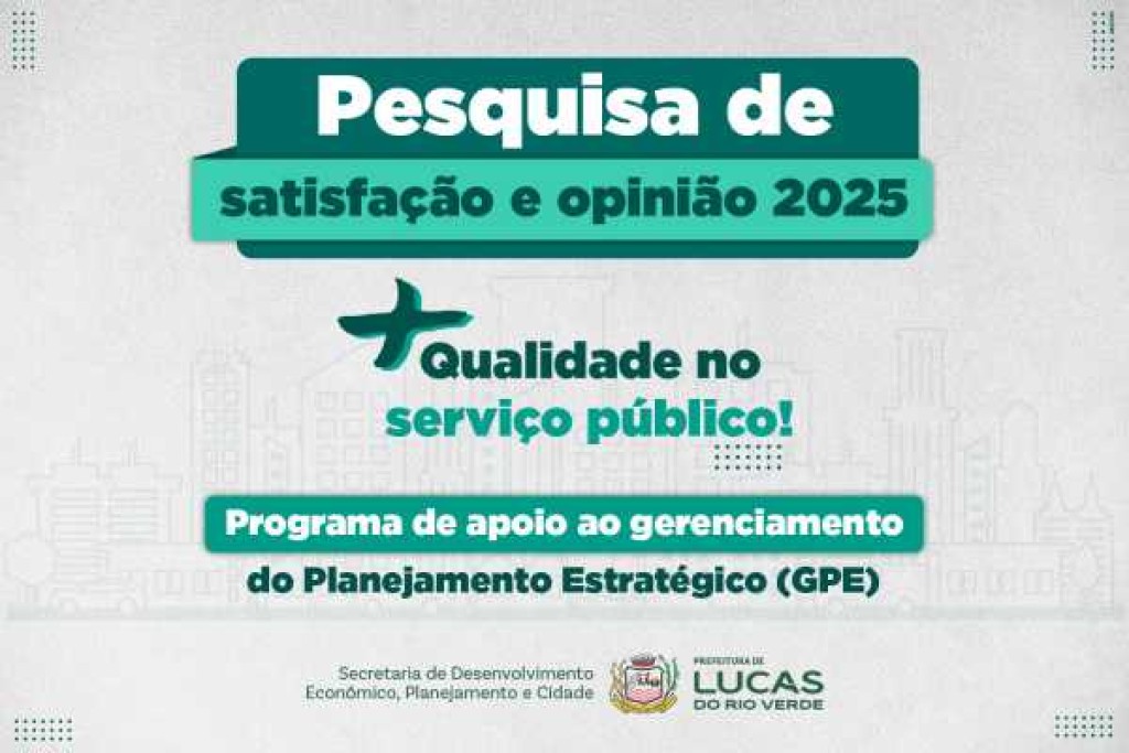 A Prefeitura de Lucas do Rio Verde reforça o convite à população para participar da pesquisa de opinião sobre os serviços públicos ofertados pela administração municipal, disponível desde 23 de dezembro de 2025 e aberta até 15 de janeiro de 2026, de forma on-line.