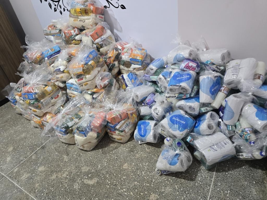 Diante do flagrante, os policiais entraram na casa e encontraram 92 cestas básicas armazenadas, prontas para distribuição, sendo 47 de limpeza e 45 de alimentação. O homem e a mulher abordados foram conduzidos para a delegacia.