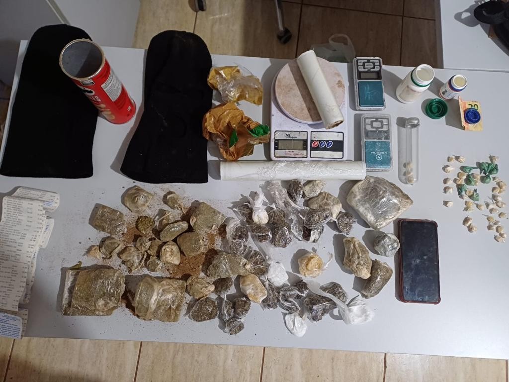 Durante as buscas nos endereços dos suspeitos, foram localizadas mais de 130 porções de entorpecentes, entre maconha, pasta base e cocaína. Duas pessoas foram presas em flagrante por tráfico de drogas.