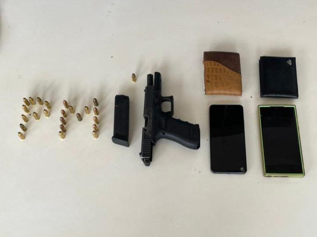 Na revista aos suspeitos, a PM encontrou uma pistola municiada e carregada com 18 munições, além de outras seis em seu bolso. Também foram encontrados um relógio, celulares e uma máscara balaclava.