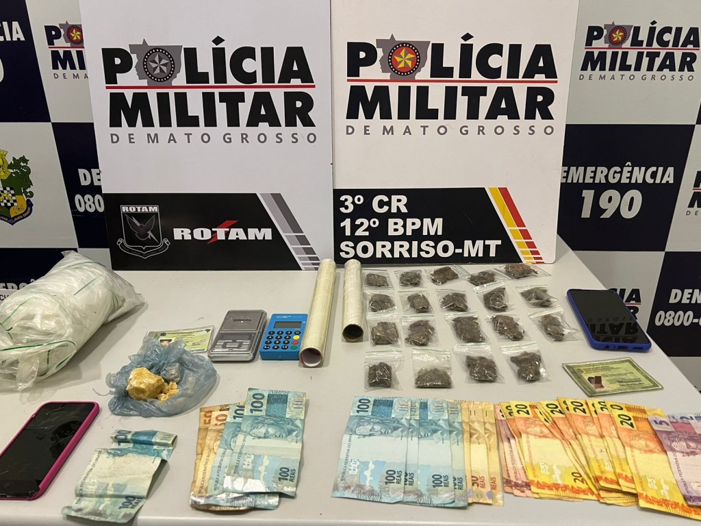 Policiais militares do Batalhão de Rondas Ostensivas Tático Móvel (Rotam) prenderam um homem, de 29 anos, e uma mulher, de 18 anos, por tráfico ilícito de drogas, na noite desta segunda-feira (23.09), em Sorriso.