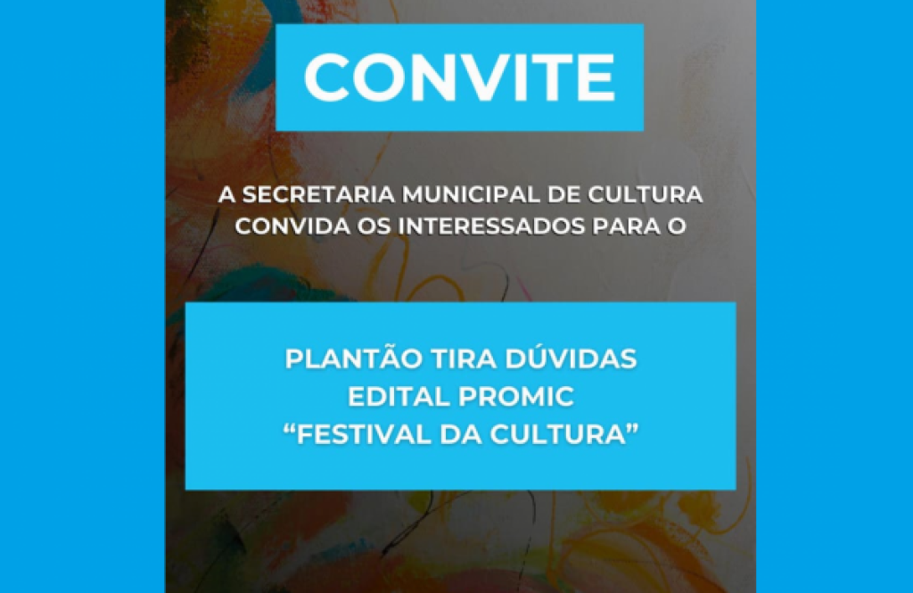 A Prefeitura de Sorriso, por meio da Secretaria Municipal de Cultura (SEMCT), realiza nesta terça-feira, 9 de setembro, o Plantão Tira Dúvidas do Edital PROMIC nº 003/2025 – “Festival da Cultura”. O evento ocorre a partir das 18h na Biblioteca Monteiro Lobato, localizada na Praça da Juventude, no Centro. O objetivo é orientar artistas, coletivos e produtores culturais locais sobre o processo de inscrição e os critérios de seleção.